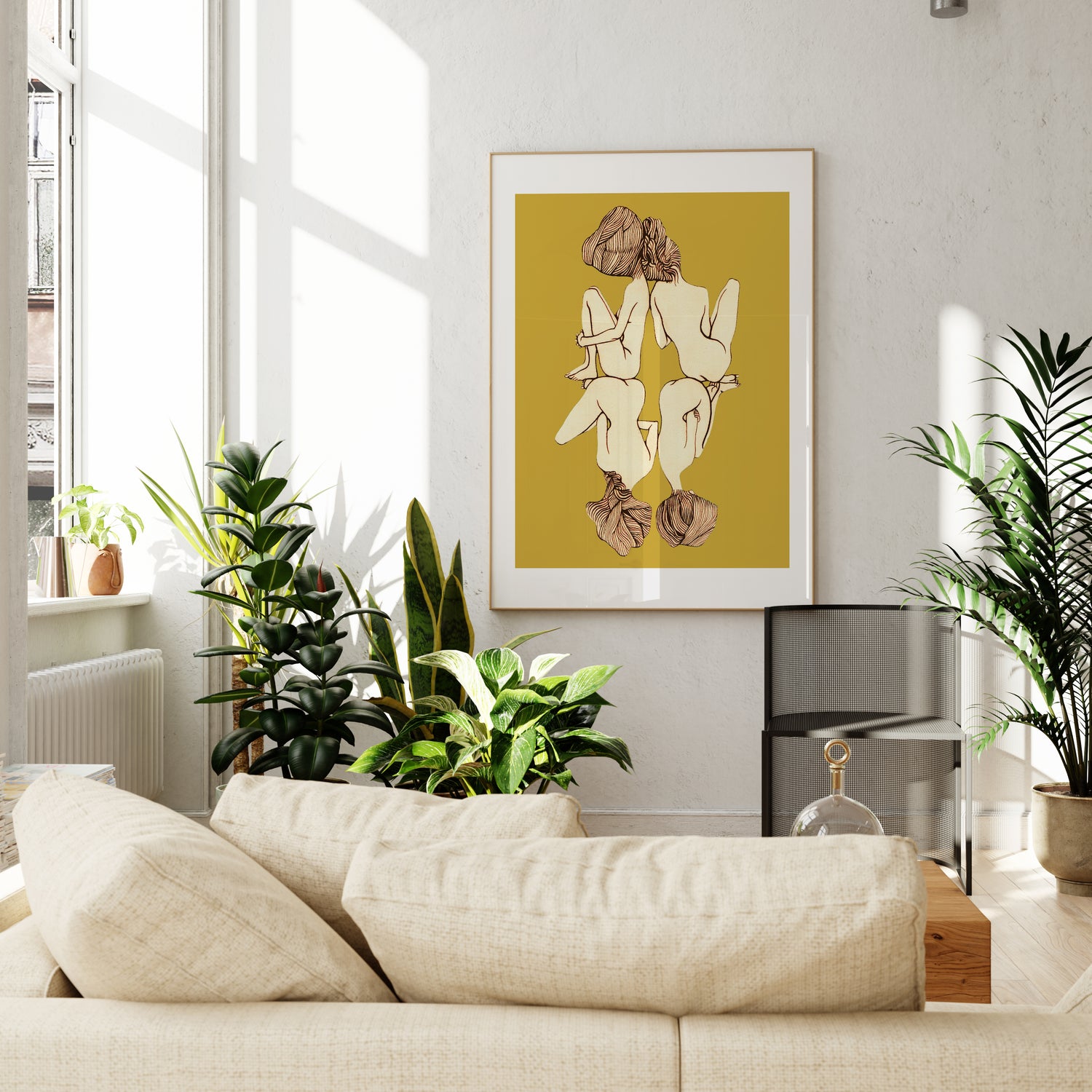 Renée's art prints are analog to digital, meaning the originals are made by hand with gouache, flashe, ink, or other water-based media on paper. The paintings are scanned at high resolution to capture all of the texture and detail of each piece, then converted into digital format for giclée printing.